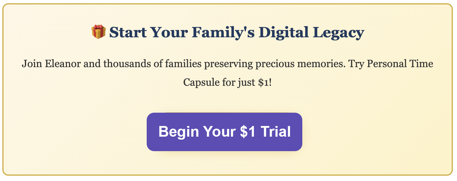 Eleanor's family has noticed the change. Weekly family dinners now include "story time," where Eleanor shares newly digitized photos and the stories behind them. Her children and grandchildren have started contributing their own memories to the family's digital time capsule, creating a living archive that grows with each generation.